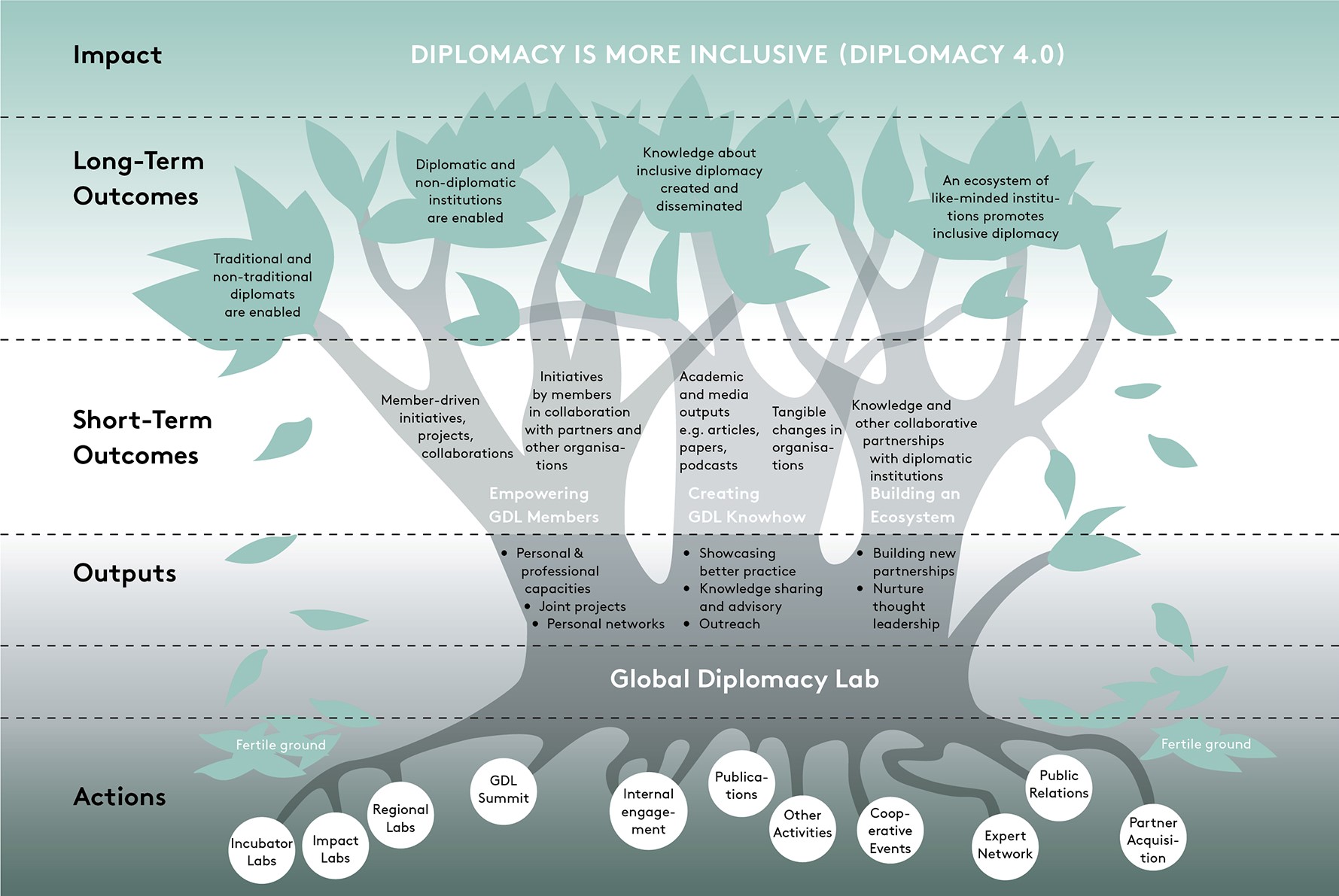 Since its founding, the GDL has established a global ecosystem characterised by mutual accountability, respect and inclusiveness and has delivered positive transformational change. In the true spirit of the GDL, members came together in 2020 to develop a pathway they could use to to reach inclusive and global dilomacy, accompanied by the GDL Knowledge Partner, the Partnerships Resource Centre of the Erasmus University Rotterdam.
